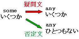 「some」は疑問文では「any」に形が変わります。意味は変わらずに「いくつか」です。