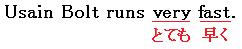 ウサイン・ボルトはとても速く走ります。