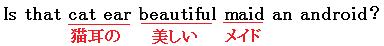猫耳は普通2つついているの「cat ears」なのですが、このように形容詞として使うときは単数形にするという決まりがあります。