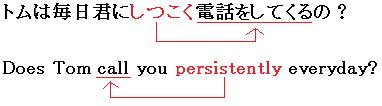 「しつこい」ことを強調したければ「Does Tom persistently call you everyday?」のように、副詞を動詞の前に置いても大丈夫です。