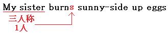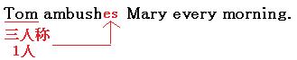 主語が三人称で単数のときだけ、動詞に「s」か「es」をつけます。指差し確認で、片手で横の方を指差すときだけです。