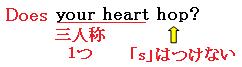 文頭の「Does」は印象的なので覚えやすいのですが、動詞に「s」をつけないというのが地味で忘れがちです。気をつけましょう。