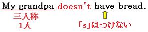 「doesn't」は印象的なので覚えやすいのですが、動詞に「s」をつけないというのが地味で忘れがちです。気をつけましょう。