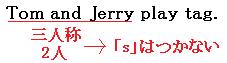主語(「~は」の部分)の人称と数に気をつけながら英語にしてみましょう。 指差し確認しながら英語にすると間違えにくくなります。「三単現の時にsをつけないと気持ち悪い!」ってなるまで、声に出して練習しましょう!